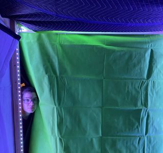 You can either put a lamp in here or LED lights. Either way, you'll need some form of light. You can also set up your green screen at this moment too since you have everything set up! (Say hi to my roommate Chris)